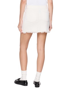 Fusing contemporary sensibility with traditional know-how, Barrie presents this mini skirt, artfully spun from the softest material into a classic silhouette with a frayed hem. Rendered in a crisp white palette, this piece is designed to push through seasons and trends.