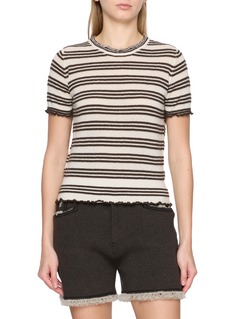 Experience the epitome of Scottish heritage and contemporary luxury with Barrie's exquisitely crafted cashmere pieces. Rendered in monochrome stripes with seersucker details, this top imbues a playful twist on timeless staples.