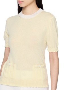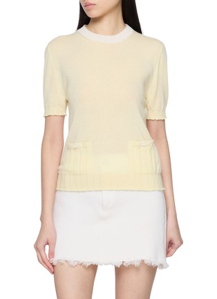 这款精工细作的短袖针织上衣采用轻盈羊绒棉混纺面料,饰以精致平罗纹细节,堪称温暖季节的优雅必备单品。Barrie 设计巧妙平衡柔软质感与立体廓形,通过隐约的扇贝形下摆与低调纽扣点缀,既能打造精致日间造型,亦可轻松叠穿。