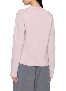 Barrie 与格拉斯哥品牌 Mackintosh 合作,贵族材质的匠心掌控与技术创新在此碰撞交融。这款采用羊绒与羊毛双面编织的开衫,以柔韧包裹的结构演绎 Barrie 风格,以现代织物语言巧妙演绎经典“橡胶带”元素。内外反转的对比设计既致敬外套设计精髓,更彰显品牌独特气质。