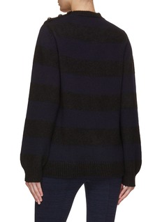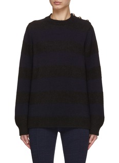这件毛衣在经典条纹单品上多了一分细腻的纽扣奢感点缀。导演 Sofia Coppola 与拥有 120 年历史的苏格兰羊绒品牌巴利(Barrie)合作,推出了含针织衫、羊毛大衣、军装夹克等的秋冬旅行胶囊衣橱,百搭,惬意,又不乏精致细节,让人联想到其电影中的复杂、保持探索着的女主角。