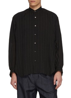 Fluid tailoring meets conceptual play in this double-end shirt, where pinstripes trace a relaxed pyjama silhouette with a reversible hemline twist. Designed by Beautiful People, the lightweight blend drapes effortlessly—ideal layered over denim or worn loose for understated evenings and off-duty refinement.