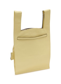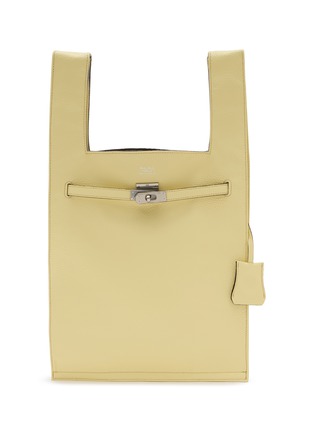 Quietly architectural, the large Market Bag is cut in shrink leather with squared U-handles and a belt-style turn-lock. Its tall, softly structured profile opens to a spacious main compartment, delivering polished ease from weekday commutes to pared-back weekend dressing.