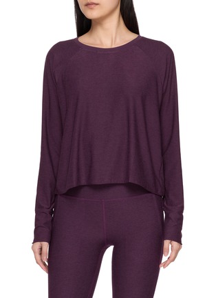 Easy, lightweight, and quietly versatile, this Beyond Yoga long-sleeve tee is made for moments before, during, and after movement. The relaxed drape and high-hip length lend a fluid silhouette, while raglan sleeves add softness and ease—ideal worn solo, layered under knits, or thrown on post-workout.