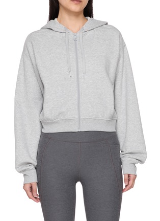 When ease is the priority but polish still matters, this zip-up hoodie answers with clean lines and a softly structured feel. Cut to sit neatly at the waistband, it balances a relaxed attitude with everyday refinement—equally suited to post-workout wear or casual city layering.