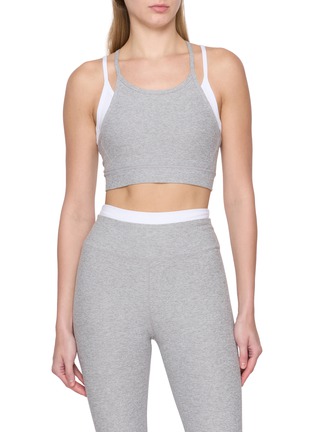 Clean-lined and quietly confident, this long line bra by Beyond Yoga brings a softer mood to performance dressing. Rendered in the brand’s signature Spacedye fabric, the smooth silhouette and layered straps create a refined balance of comfort and visual interest, ideal for low-impact training or styled into everyday looks beyond the studio.