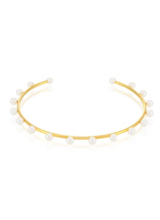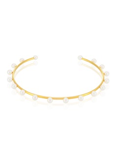 Bijou de M distills modern romance into a choker, crafted from 18K gold-plated sterling silver and adorned with a row of freshwater pearls. Understated yet luminous, it slips on for everyday polish and after-dark ease. Wear solo for purity or stack with fine chains.