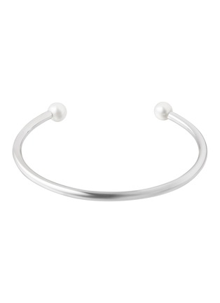 Bijou de M distills modern romance into a bangle, crafted from 18K gold-plated sterling silver and tipped with twin freshwater pearls. Understated yet luminous, it slips on for everyday polish and after-dark ease. Wear solo for purity or stack with fine chains.
