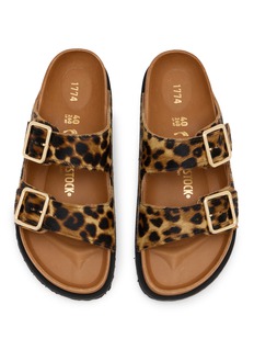 Birkenstock 1774 这款 Arizona 凉鞋以马毛小牛皮打造,呈现野性豹纹图案。双带设计搭配金属扣环,搭载皮革包覆软木鞋垫与EVA鞋底,舒适贴合,彰显不羁风格与奢华质感。
