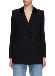 Blazé Milano 由三位意大利时尚编辑联合创立,致力于打造彰显女性自信与优雅的服饰。这款西服外套精选混羊毛面料打造细腻质感,枪驳领为其注入干练硬朗气息,别致的半圆形口袋更添丝丝辨识度。