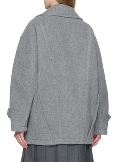 A timeless reinterpretation of masculine tailoring, this cropped overcoat embodies BOINIGAN’s sculptural minimalism. Crafted from a luxurious wool-cashmere blend, it showcases a commanding oversized silhouette with a soft drape that blurs power and ease—ideal for layering over structured or fluid ensembles.