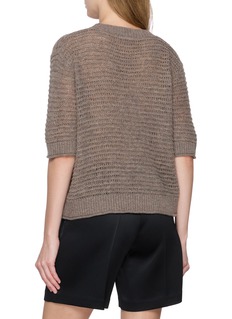 Lightweight and textural, this BOINIGAN knit top brings refined ease to everyday dressing. Crafted with an airy open-stitch pattern, it balances sophistication with casual sensuality—perfect for layering over tonal underpinnings or pairing with tailored shorts for a modern summer edit.