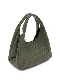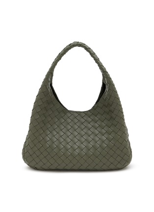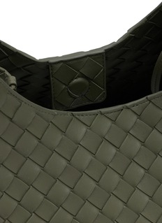 Crafted from buttery-soft Italian lambskin, this Bottega Veneta Campana shoulder bag showcases the house’s iconic Intrecciato weave in a timeless archival silhouette. Finished with a refined leather tie closure and discreet magnetic fastening, it marries artisanal craftsmanship with understated luxury.