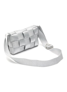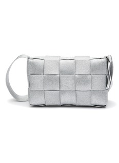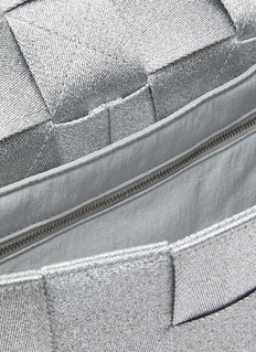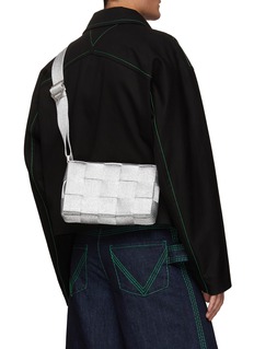 Bottega Veneta(葆蝶家)这款斜挎包采用品牌特色的 Intrecciato 编织工艺,并以金属质感的织物进行演绎。其整体小巧玲珑,结合精致的银色调,轻松搭配你的摩登时尚造型。