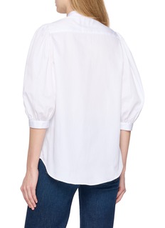 Romantic yet resolutely modern, this Bourrienne Rêverie shirt channels 17th-century refinement through cascading jabots and softly puffed sleeves. Crafted in crisp cotton, it frames the silhouette with sculptural lightness — style it with tailored trousers for contrast or denim for poetic nonchalance.