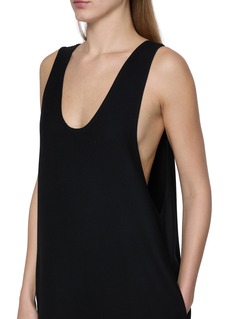 BOWTE distills sensual minimalism into the River long dress, tailored from fluid worsted wool that glides softly along the body. The deep scoop front and back lend an effortless seduction, balanced by a clean column silhouette that pairs seamlessly with both refined flats and sculptural outerwear.