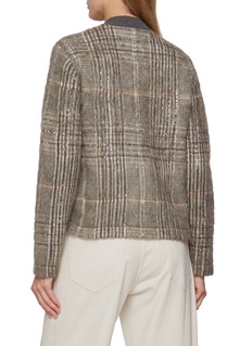 Brunello Cucinelli 凭借对传统工艺的坚持和对品质的追求,持续创造兼具舒适与美感的时尚单品。这款开衫运用撞色格纹设计语言,圆领轮廓展现经典针织美学,金属纽扣开合设计便于日常穿搭。