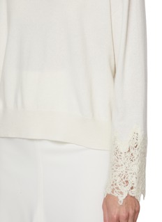 Brunello Cucinelli 凭借对传统工艺的坚持和对品质的追求,持续创造兼具舒适与美感的时尚单品。这款针织衫采用圆领轮廓展现简约美学,蕾丝袖口工艺彰显细节匠心,体现品牌对经典女装的现代演绎。