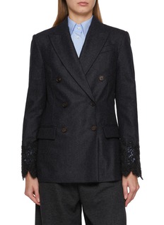 Brunello Cucinelli 凭借对传统工艺的坚持和对品质的追求,持续创造兼具舒适与美感的时尚单品。这款外套采用双排扣和枪驳领设计展现经典美学,蕾丝袖口工艺彰显细节匠心,收腰剪裁勾勒身材曲线,体现品牌对经典女装的现代演绎。