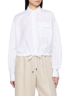 Brunello Cucinelli 擅于以简约的设计、精湛的工艺呈现历久弥新的品质。这款以现代剪裁诠释经典衬衫,这款衬衫以现代剪裁诠释经典款式,短款设计在腰间加入抽绳细节,增添随性摩登气息。