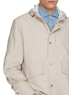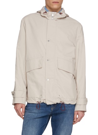 Brunello Cucinelli 以意大利精湛工艺与奢华质感闻名,诠释低调优雅美学。这款派克大衣采用轻盈实穿面料打造,配有抽绳连帽与翻盖口袋,线条简洁,展现都市休闲格调。