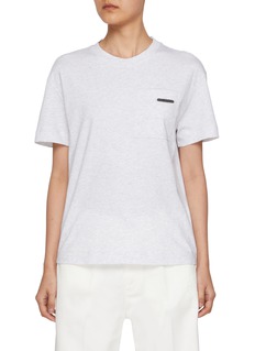 This Brunello Cucinelli T-shirt features a soothing grey canvas accented with a unique monili-trimmed pocket, offering the label's signature subtle nod to luxury.