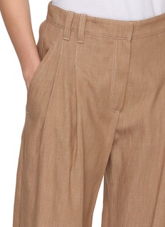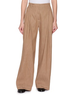 Brunello Cucinelli 以意大利精湛工艺与奢华质感闻名,诠释低调优雅美学。这款牛仔裤以高腰设计延伸流畅阔腿线条,褶裥细节塑造立体层次,展现摩登休闲格调。