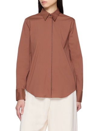 Monili 镶珠是 Brunello Cucinelli 的标志,品牌擅于以简约的设计、精湛的工艺呈现历久弥新的品质。这款衬衫便将其标志性设计融入开襟处,带来商务与精致的细腻融合。