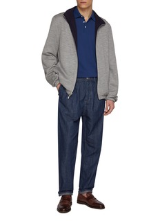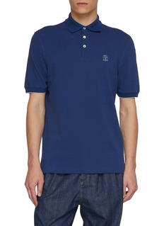 Brunello Cucinelli 擅长以细节彰显奢华质感,这款 Polo 衫以珠地网眼面料兼顾透气与挺括,金属色刺绣 Logo 低调精致,罗纹领边与袖口强化品质感。