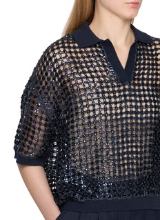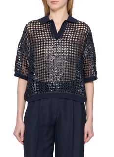 光影与质感的交织,成就了 Brunello Cucinelli 这款短袖针织衫。轻盈透气的镂空针织面料点缀着低调亮片,以宽松垂坠感中和了短款版型的利落感。内搭同色系抹胸或真丝吊带衫,轻松实现从日间到夜晚的精致蜕变。