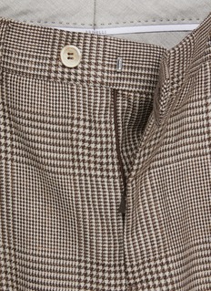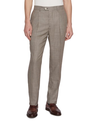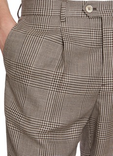 Truly a wardrobe staple, these pleated pants by Brunello Cucinelli is defined by its timeless glen check veneer and a classic silhouette. This piece is the perfect fusion of refinement and craftsmanship.