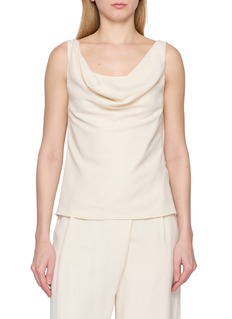 Fluid and refined, this sleeveless top by Brunello Cucinelli is shaped in softly structured viscose with an elegant draped V neckline. The cascading front and deep V back create graceful movement, making it a poised choice for evening tailoring or layered under a lightweight blazer.