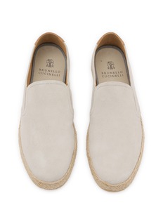 Brunello Cucinelli 擅于以简约的设计、精湛的工艺呈现历久弥新的品质。这款平底鞋精选质感绒面皮拼接制成,简约轮廓透露日常精致触感。
