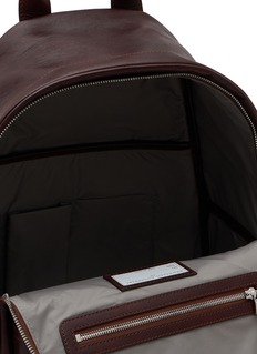 Brunello Cucinelli 这款多功能背包兼具实用设计与精致材质,是城市通勤与旅行的优选。小牛皮特有的光滑抛光质感,为包身优雅的配色增添层次与个性。外部配备两个带磁吸扣的小侧袋及前置拉链袋,让随身物品触手可及。背部挂环设计可轻松固定于行李箱,便于拖行携带。