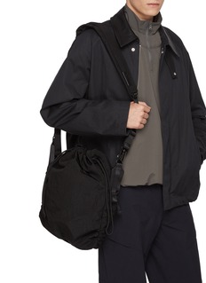 côte&ciel 致力于通过前卫设计探索旅行与日常生活的边界。这款斜挎包以扭转褶皱设计呈现动态雕塑感,顶部采用抽绳闭合,方便快速取物同时保持包型稳定。