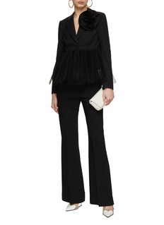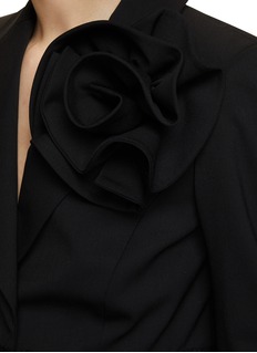 大颗花卉和网纱的拼接带来浪漫变奏曲,这款西装外套可以带来日常隆重场合里的一曲低调华丽。Carolina Herrera 以色彩为设计核心,撷取明快色调绽放简约方寸之间,极具张力与个性,成为优雅女性气质的代表。
