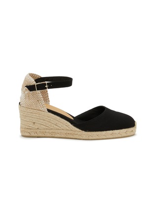 Castañer's iconic espadrille wedges feature supple canvas in midnight noir with traditional jute craftsmanship. The closed-toe silhouette creates Mediterranean elegance whilst the ankle strap adds secure femininity. Perfect for elevating summer wardrobes with European sophistication that transitions seamlessly from coastal retreats to evening engagements with timeless refinement.