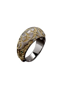 The handcrafted Time Ticking Croc is meticulously plated with yellow gold within the engravings, adding a touch of opulence and contrast to its design. With its meticulous craftsmanship, this ring is a true testament to the Castro Smith's artistry.