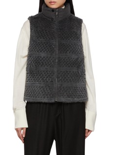 Urban armour with a plush feel. Cut to a streamlined high neck silhouette, this vest boasts is constructed from cashmere, rex fur and mink fur for a luxurious touch. Lightweight yet cocooning, it moves from city commutes to alpine weekends.