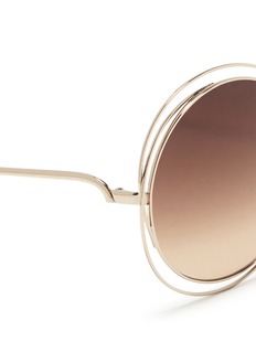 蔻依这款太阳眼镜款采用双框设计,在圆形镜框之外加以玫瑰金色金属框点缀,富有时尚趣味,不仅能保护眼睛,还能彰显您的超凡品位。
