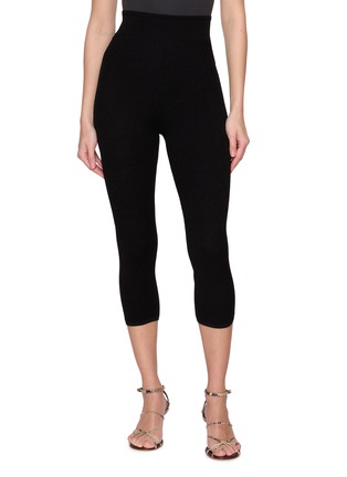 Sculpted through a honeycomb stretch knit, these capri leggings bring a refined, body-contouring sensibility to everyday dressing. Designed to sit high on the waist, the elasticated waistband smooths the silhouette, making them ideal for pairing with fluid blouses, sharp tailoring or minimalist evening separates.