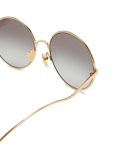 Chloé 眼镜系列以柔美线条、轻盈质感和波西米亚风格著称,展现品牌浪漫摩登的女性美学。这款太阳眼镜采用轻盈金属圆框搭配灰色渐变镜片,呈现大胆而优雅的视觉效果。