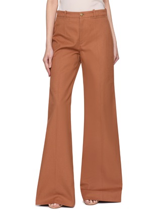 Cut with a softly structured hand, these flared denim pants channel Chloé’s effortless Parisian ease through a refined, elongated silhouette. The organic cotton fabrication lends natural texture, pairing seamlessly with fluid knits or sharp tailoring from desk to weekend.