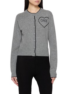A quiet expression of Chloé’s romantic codes, this fitted cardigan balances softness with graphic charm. The heart-framed logo embroidery and contrast trims bring a playful note to the classic crew-neck silhouette—perfect styled buttoned-up with tailored trousers or layered over a slip dress.