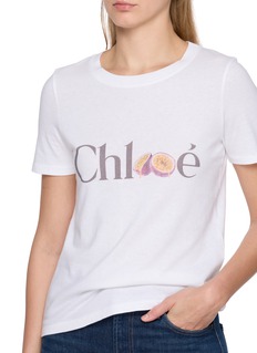 Rendered in soft organic cotton jersey, this baby-fit T-shirt offers a close, feminine silhouette with a playful spirit. Chloé pairs its signature logo with a contrast passionfruit motif, bringing a fresh, light-hearted accent that works effortlessly with denim, tailoring or layered under fluid pieces.