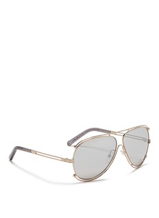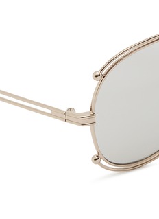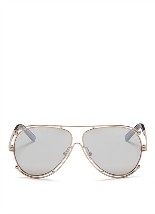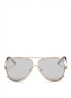 蔻依这款太阳眼镜在经典的飞行员款式的基础上,添加金色金属外框塑造成双框设计,富有趣味而且充满独特个性,是时尚造型的必备配件。