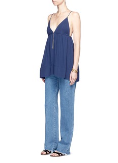 钟情简约风格的女生不妨选择蔻依此款吊带背心,细滑的真丝面料轻柔亲肤,多处附有凹凸条纹,注入一份摩登几何气息,优美的A字形衣摆更有助修饰身型,轻松打造柔美清爽的日常造型。