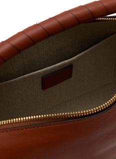 Discover the epitome of luxury with Chloe's exquisite brown leather bag. This beautifully crafted accessory features a unique, curved silhouette that is both elegant and spacious, making it a perfect companion for your daily needs or special occasions. The bag's rich, brown hue and topstitched detailing radiate sophistication, while its braided handle and golden accents add a touch of refined glamour.