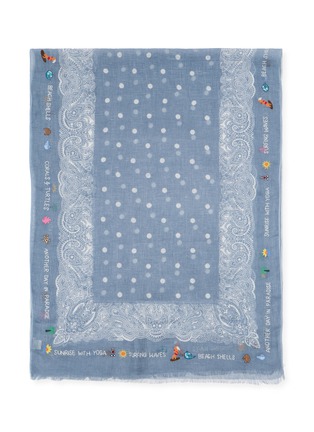 CITRUS 以手工艺与天然材质见长,传递悠然自在的生活美学。这款围巾以轻盈亚麻面料打造,印花与夏日刺绣交织,赋予造型清新艺术感与自在格调。