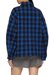 Clove’s chequered jacket fuses shirt styling with outerwear warmth, crafted in a quilted cotton check that adds depth and structure. Its boxy silhouette invites layering, while snap buttons and dual front pockets give it a clean, utilitarian ease. A casual yet polished piece that elevates everyday dressing with subtle texture.
